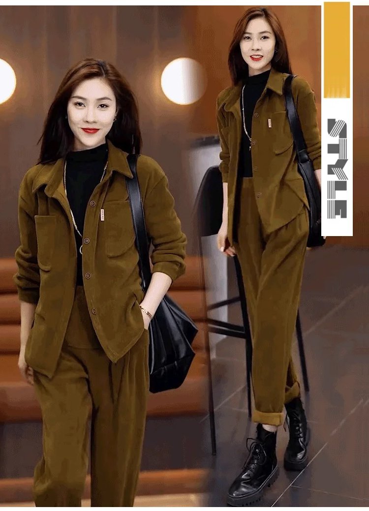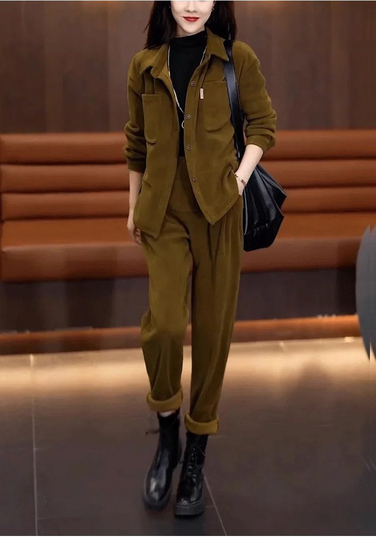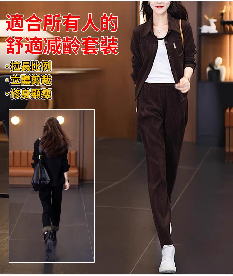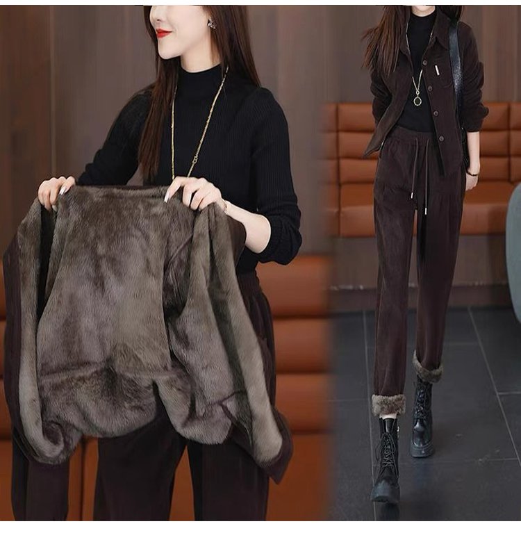 加絨氣質休閒哈倫褲兩件套